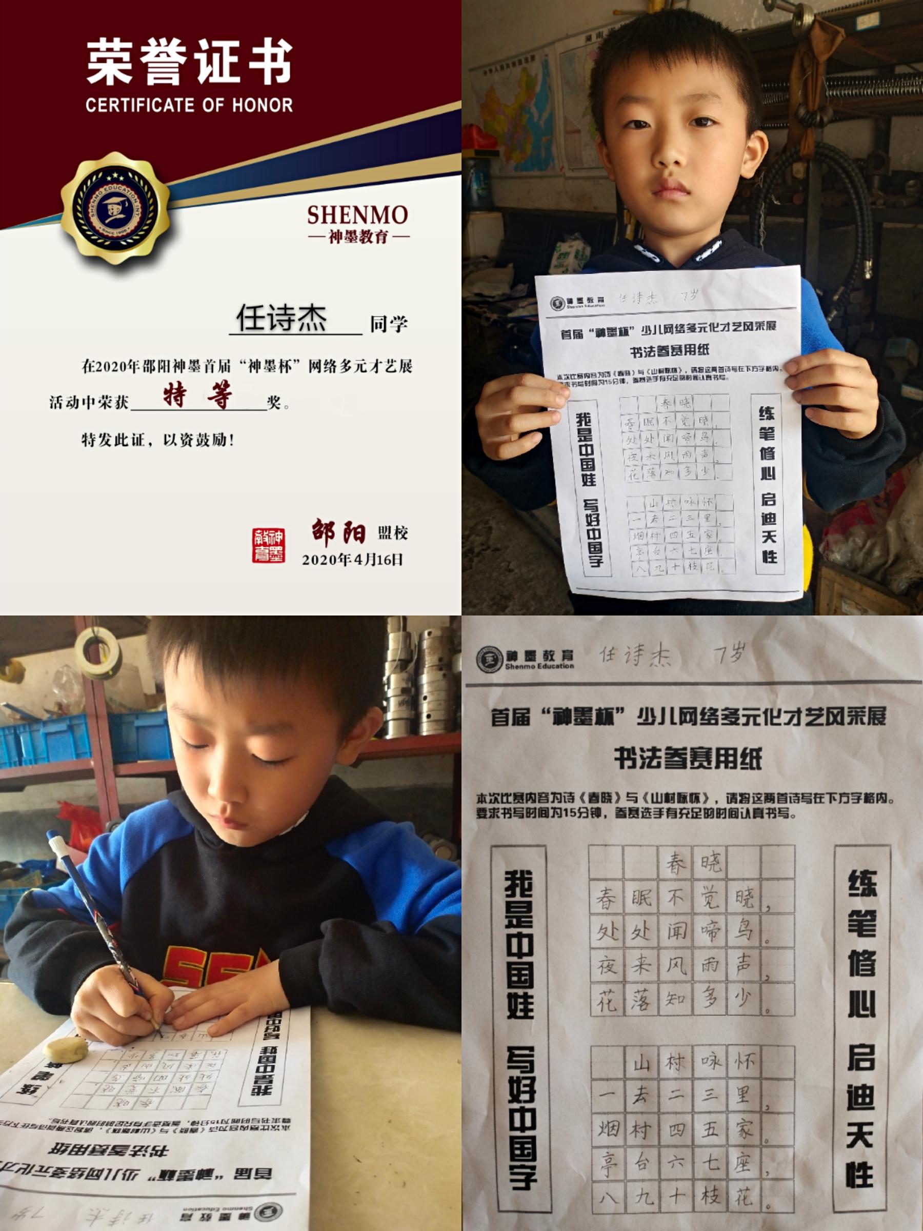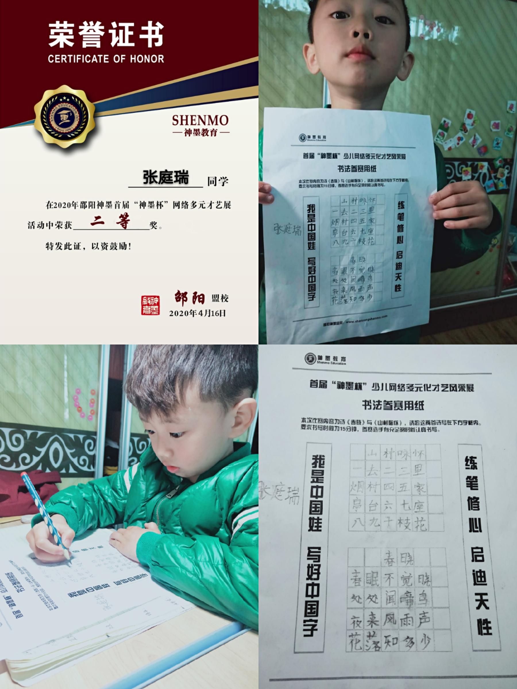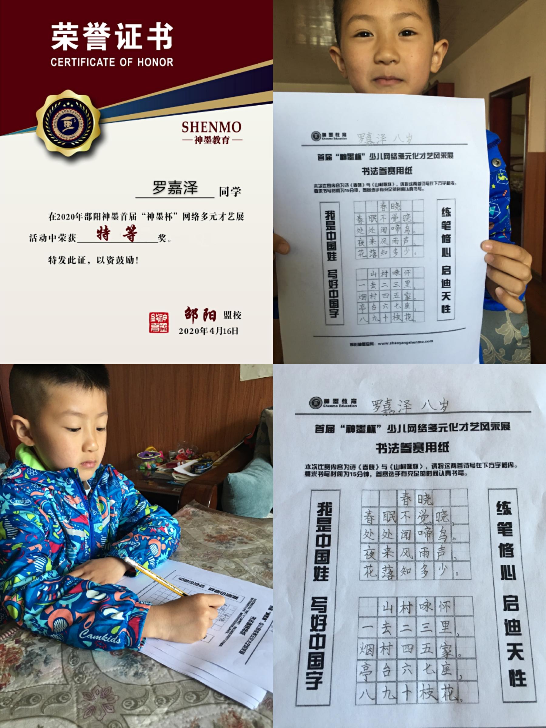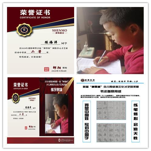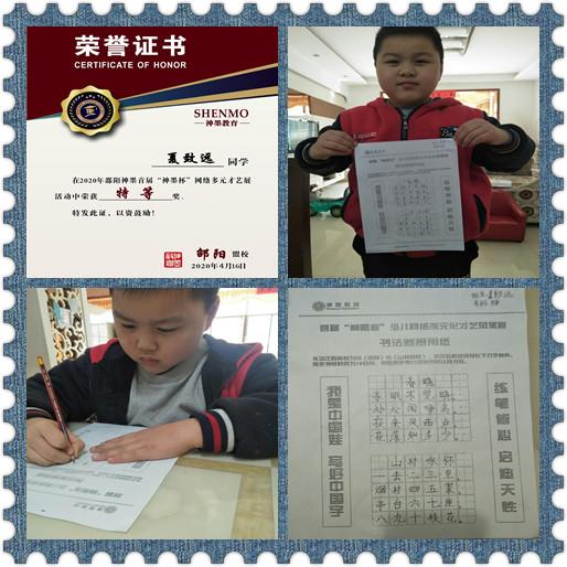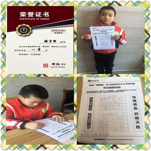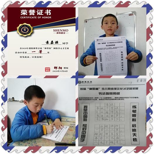 2020神墨教育练字多元化网路大赛邵阳地区获奖名单张瑾轩、夏致远、曾晗雅、罗嘉泽、任诗杰