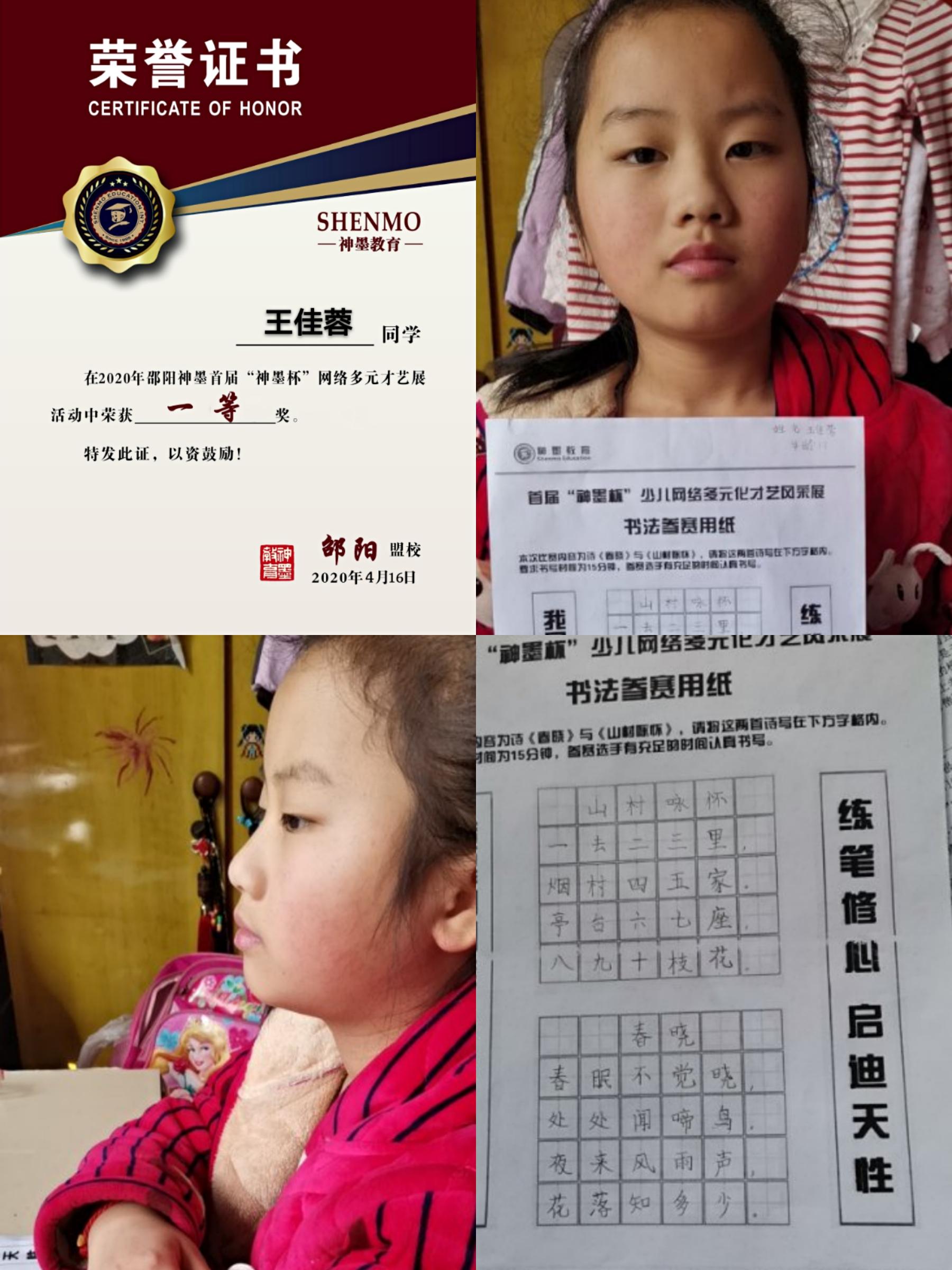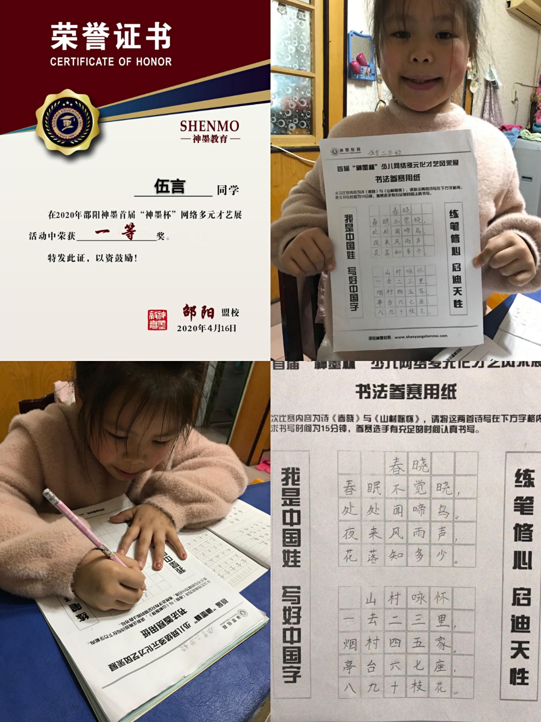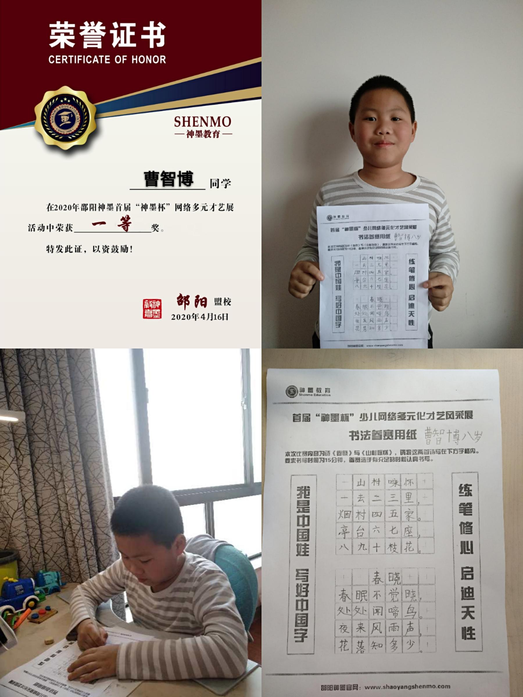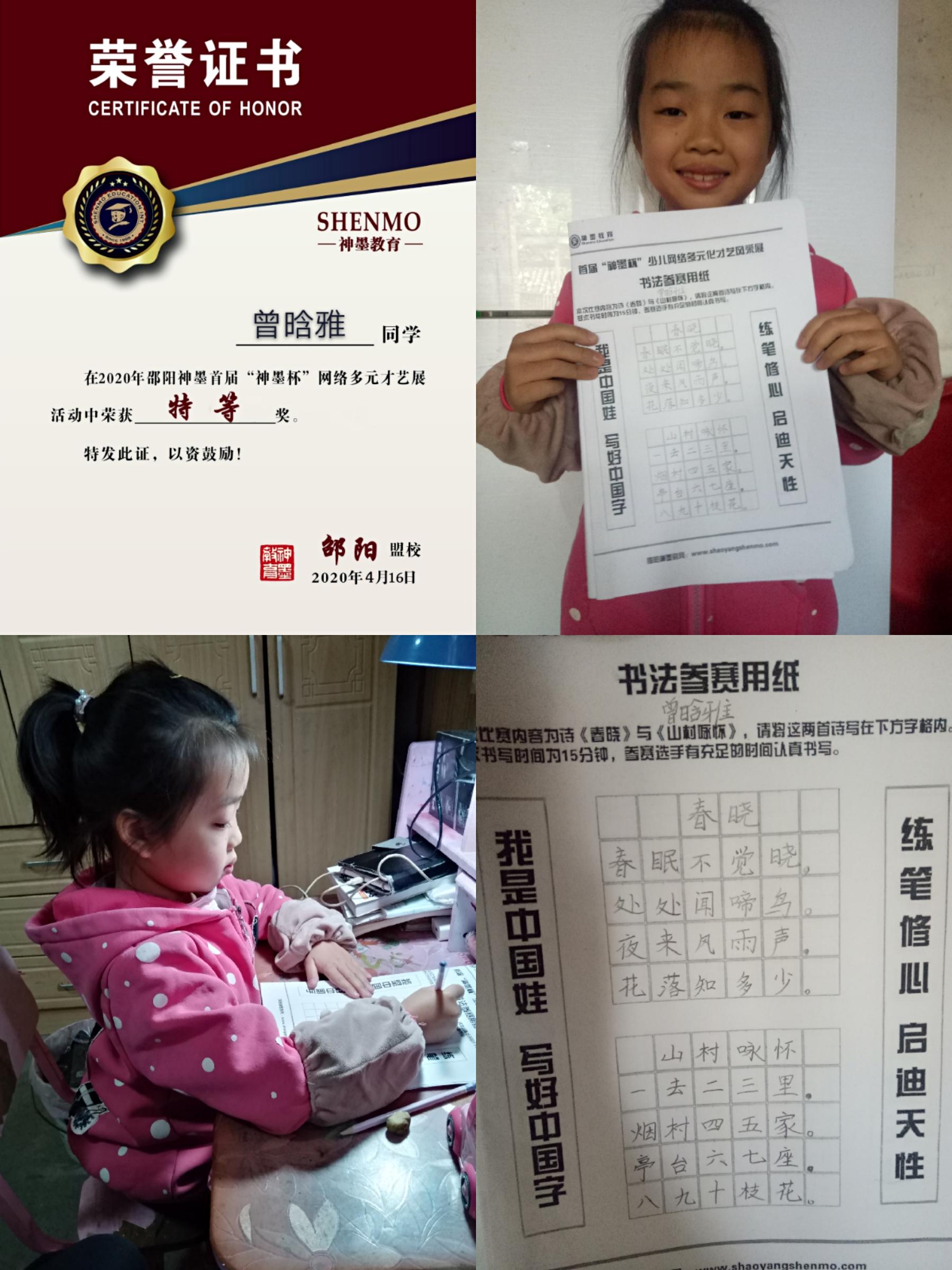 2020神墨教育练字多元化网路大赛邵阳地区获奖名单张瑾轩、夏致远、曾晗雅、罗嘉泽、任诗杰