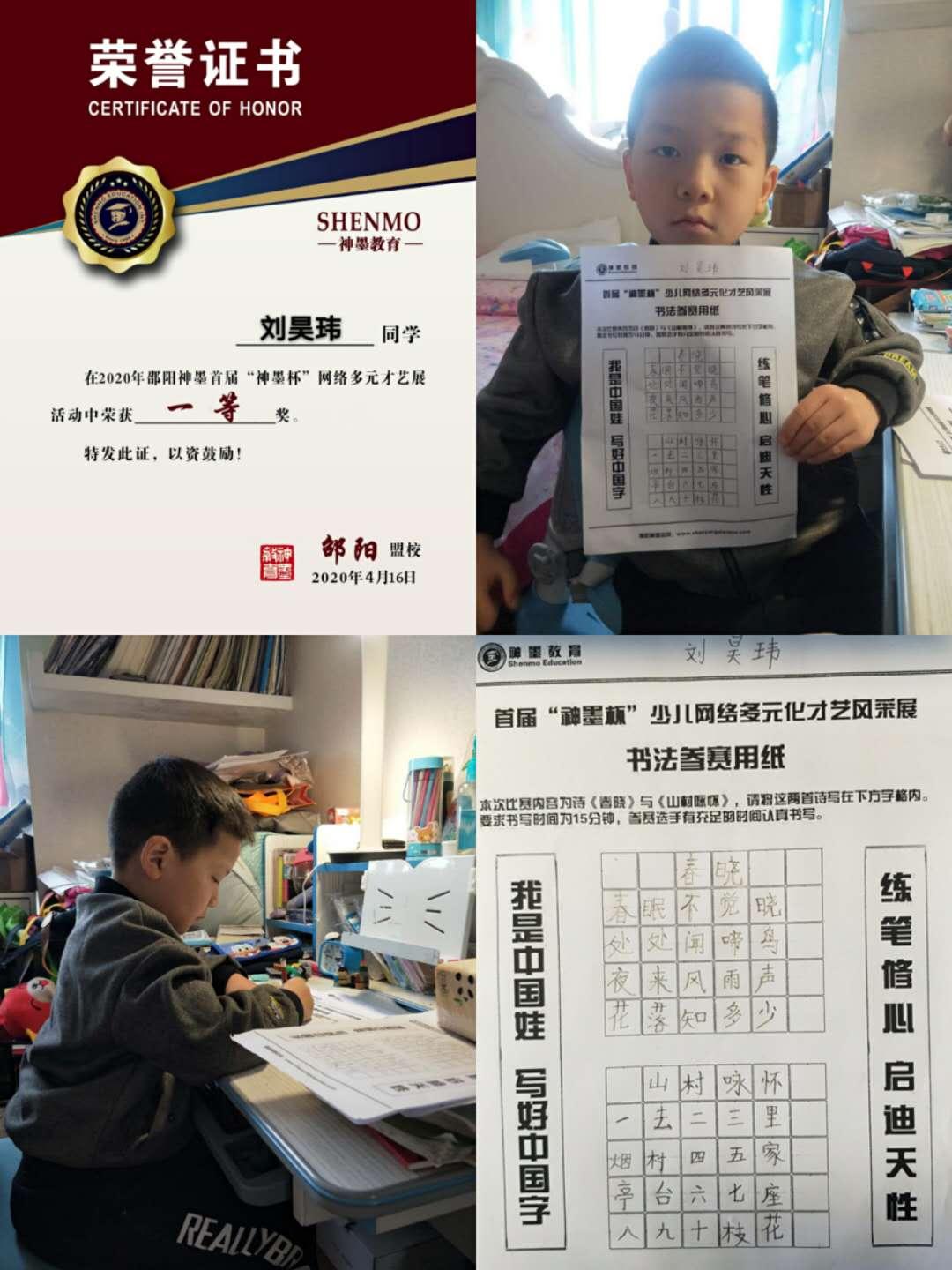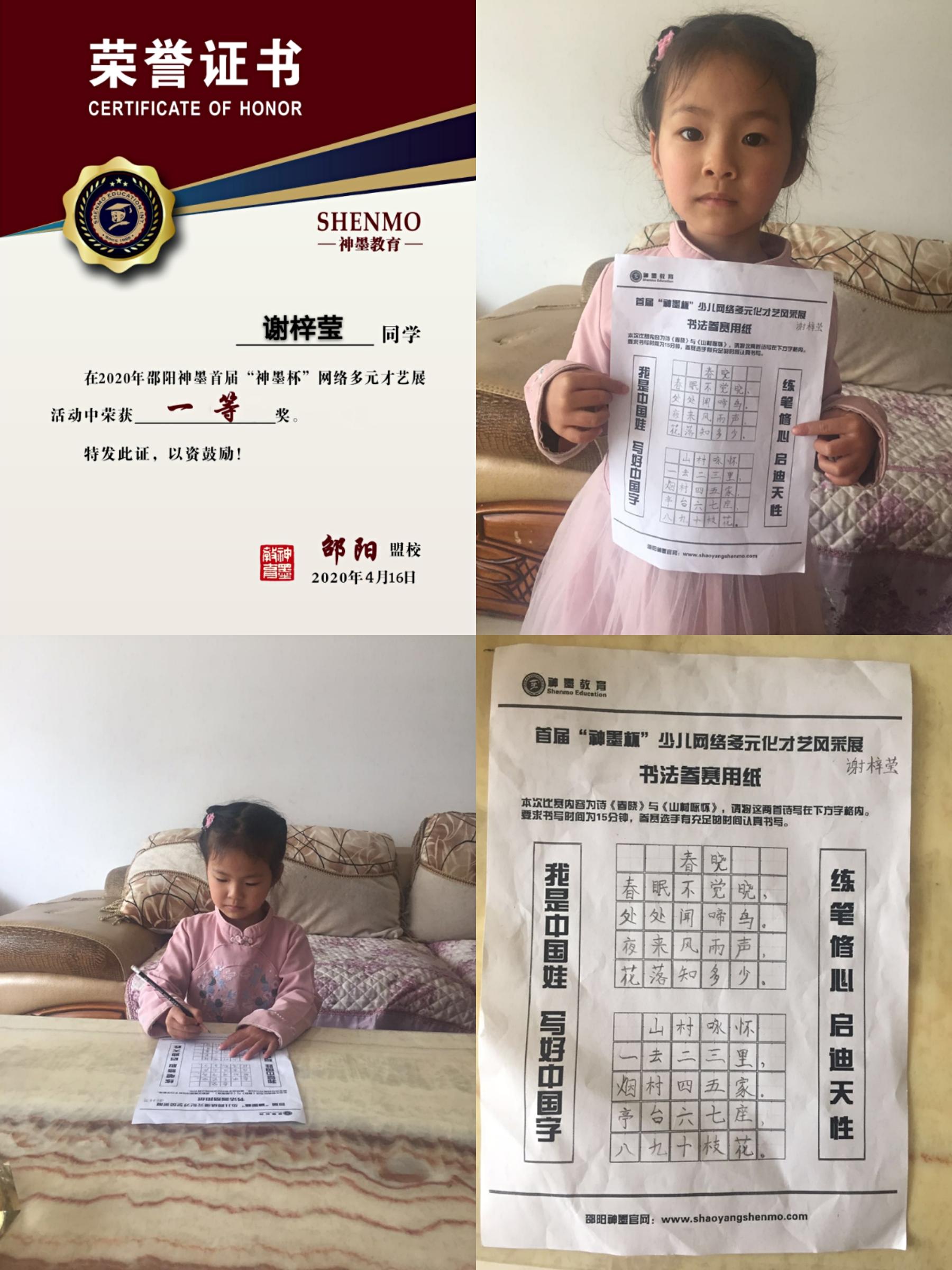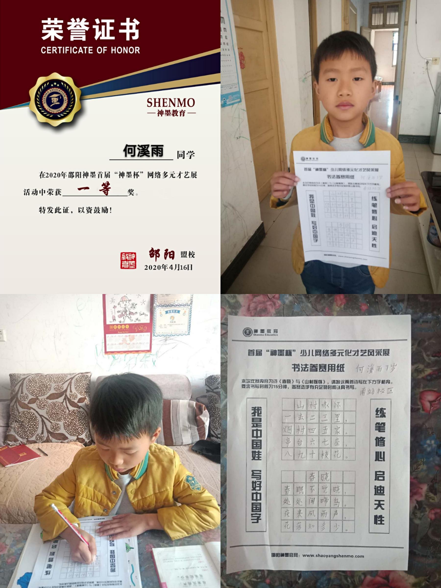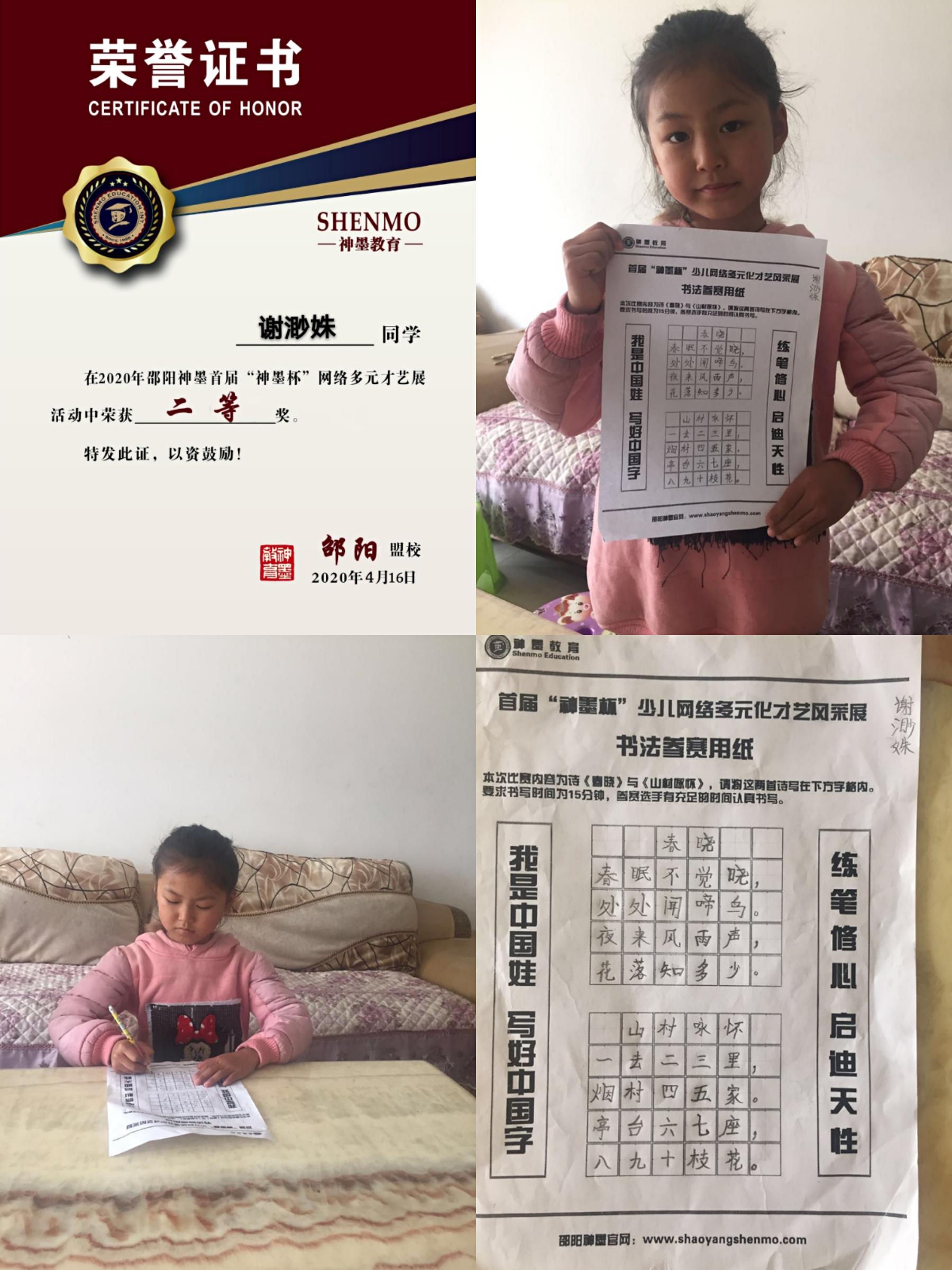 2020神墨教育练字多元化网路大赛邵阳地区获奖名单张瑾轩、夏致远、曾晗雅、罗嘉泽、任诗杰