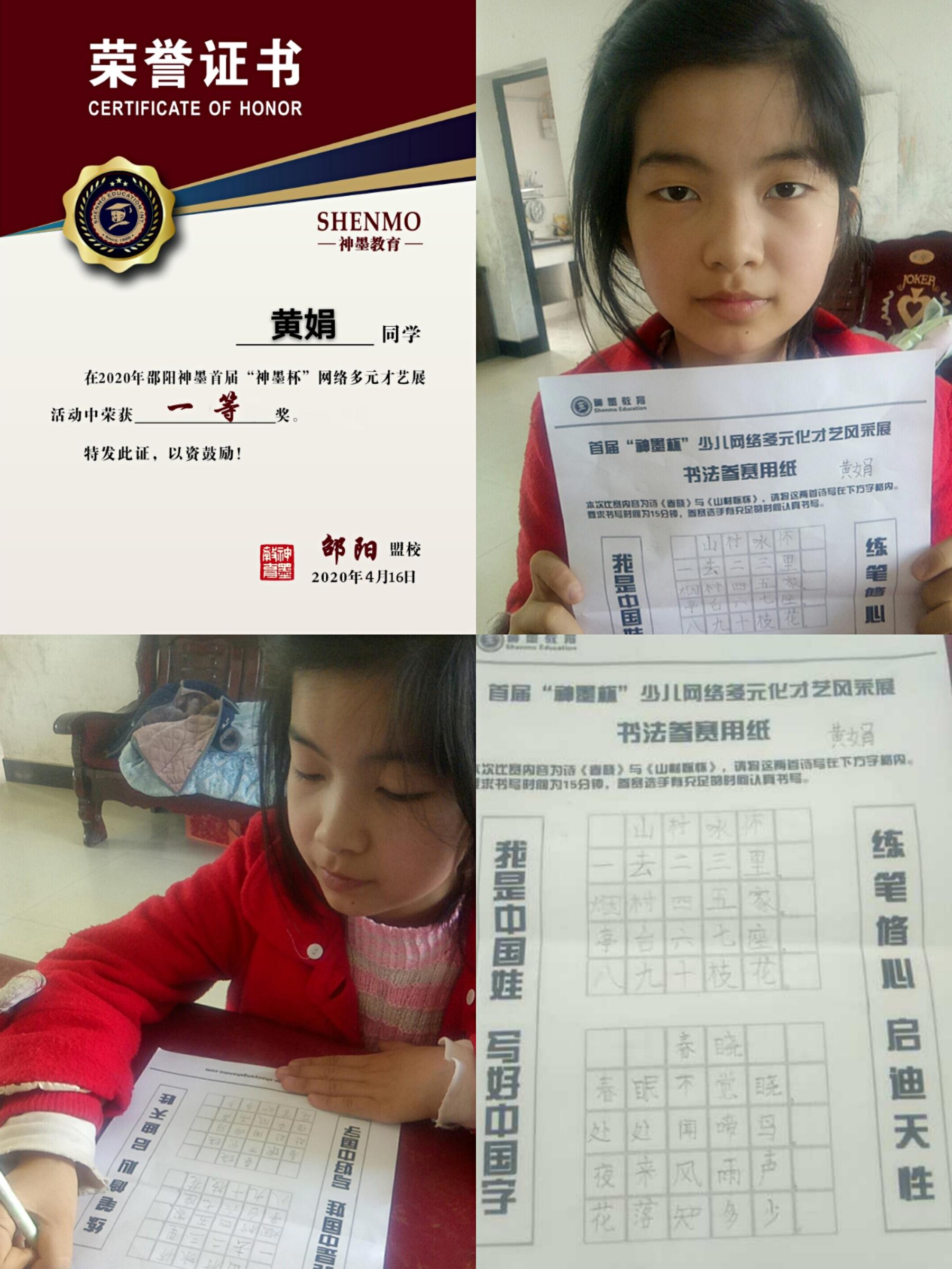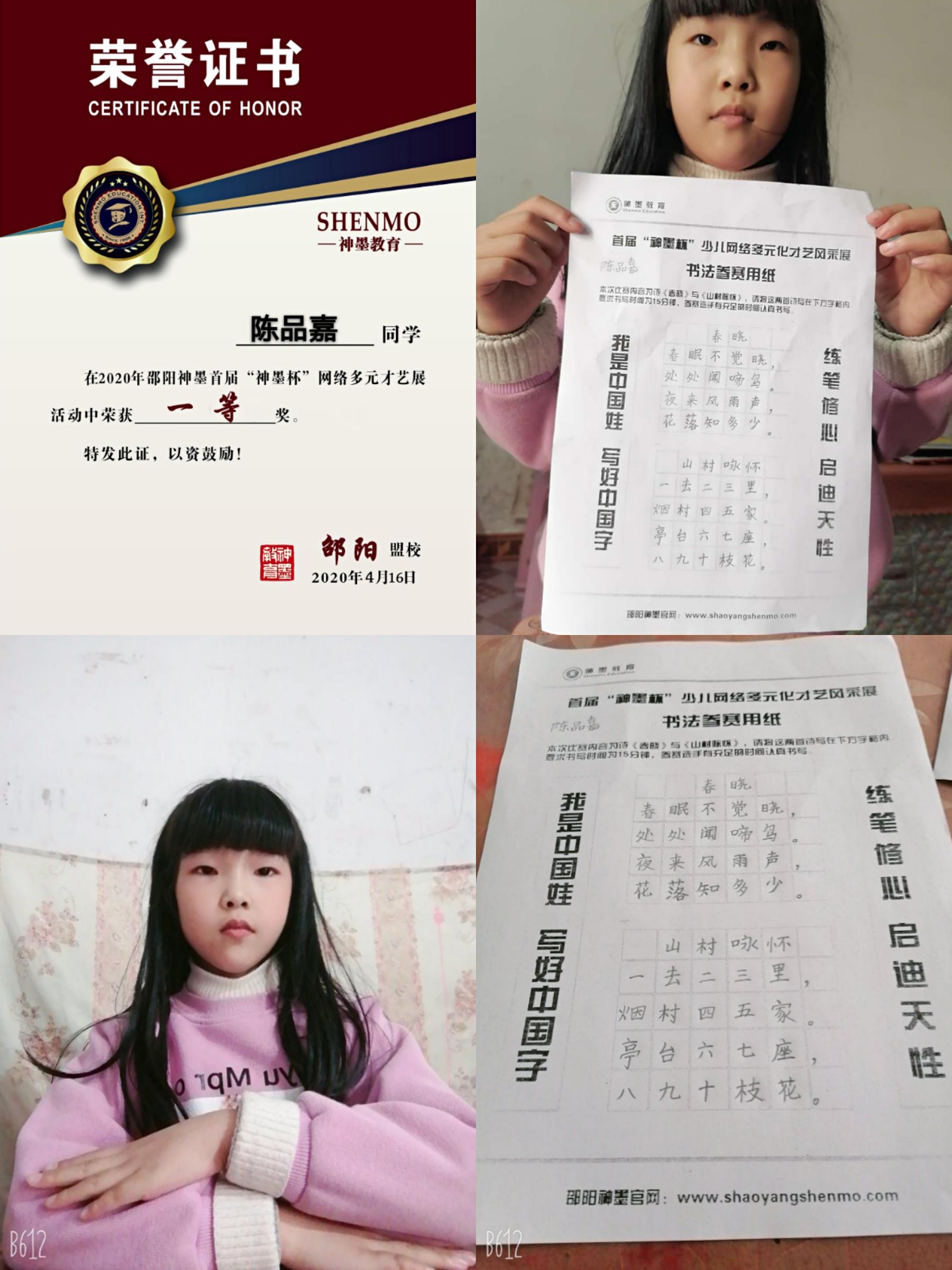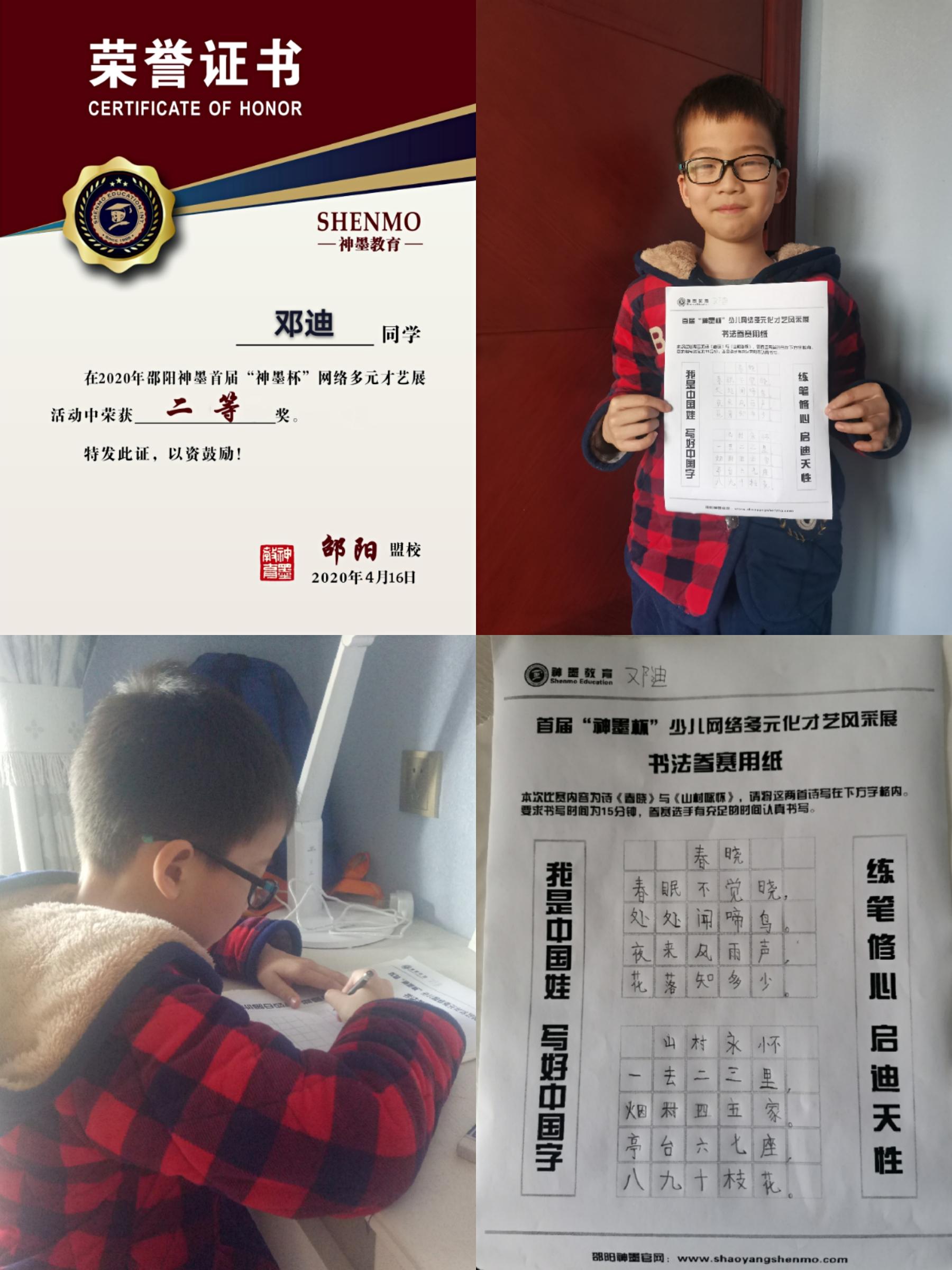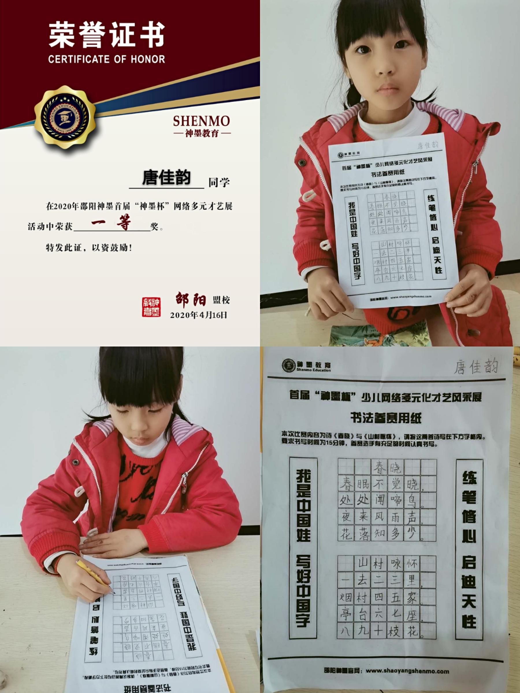 2020神墨教育练字多元化网路大赛邵阳地区获奖名单张瑾轩、夏致远、曾晗雅、罗嘉泽、任诗杰